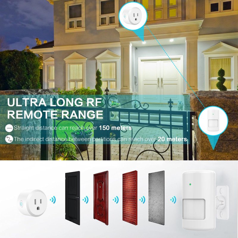 Max RF Range between Sensor & Plug: 150m/ 492FT(Open straight distance), 30m/ 98.4FT(Indirect distances, e.g. partition walls)