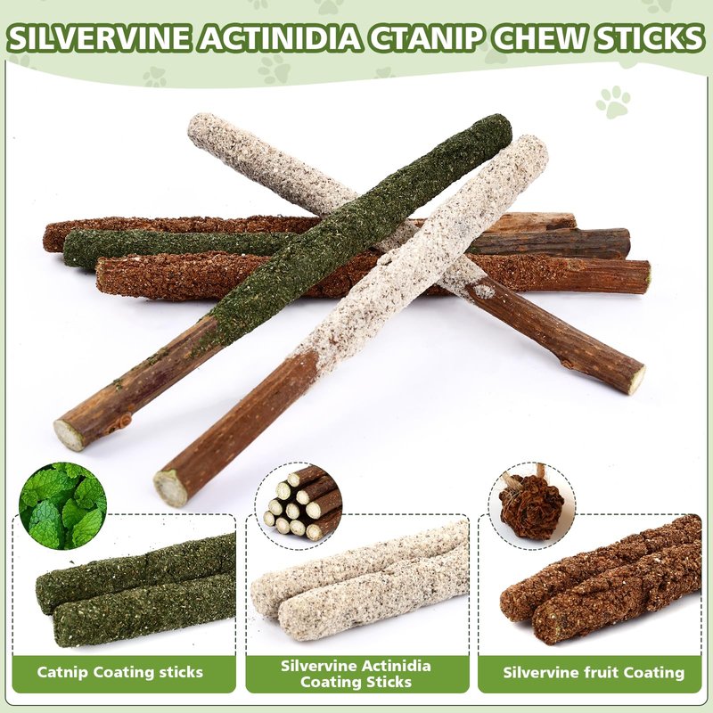 - 【Promote Digestion】 Silvervine sticks cat toy is rich in plant fiber and catmint, which can promote digestion and enhance cat's appetite, keeping away from indigestion problems. It can induce cats to vomit impurities such as hair from the digestive tract, keeping your pet healthy. Our essential cat toys for every pet family will be a big hit.