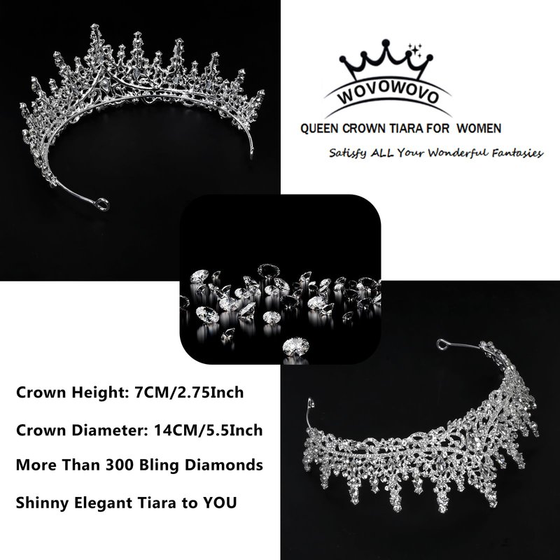 - ♕ WOVOWOVO Crowns - Queen crowns and tiaras are made of alloy and crystal rhinestone, durable and sturdy, sparkly and shiny, make you the life of any parties.