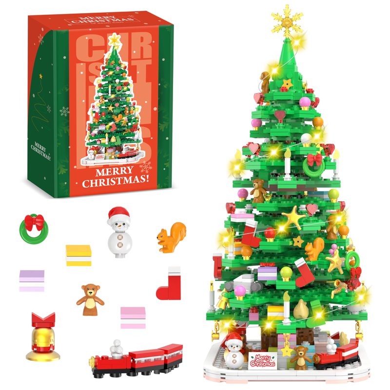 - {New Christmas Building Set} - Christmas season is coming! Take a look at our Christmas Tree Building Toy, enjoying the charm of this 1102 Christmas block and savoring the excitement of a building block journey! Come with LED light set, this Christmas tree shaped block has a rich Christmas atmosphere. Create your own unique Christmas tree and decorate it with snowmen, squirrels, presents and other decorations.