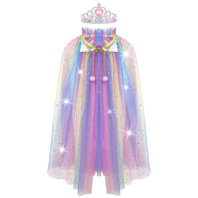 - 【SOFT MATERIAL】The princess cape is made of breathable and comfortable polyester and tulle, soft and fluffy, smooth to the touch, skin-friendly and very light, does not sting the girl's delicate skin, the crown accessories are sturdy and durable, providing her with the best Dressing experience.