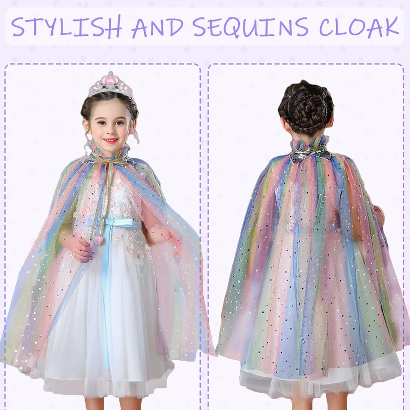 - 【APPLICABLE OCCASION】Princess cape is perfect for girl princess dress up, birthday party, gift, fairy tale cosplay, masquerade, halloween party, carnival, girls pageant, Instagram photo, beauty contest, theatrical performance or everyday wear. Make your child stand out like a fairytale princess.
