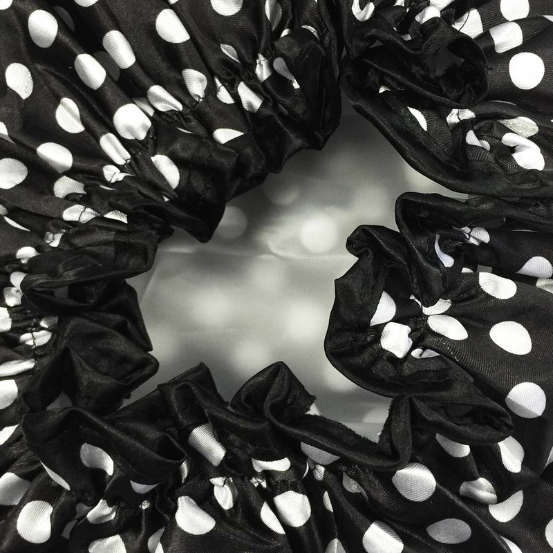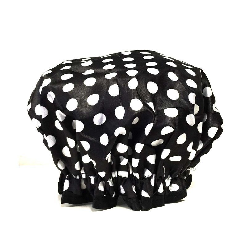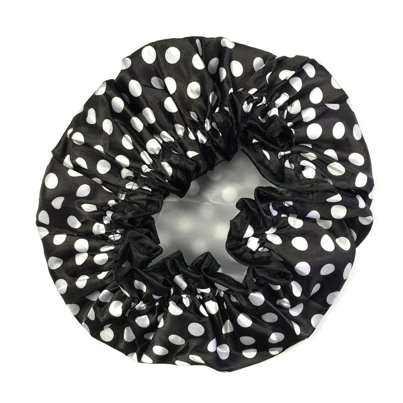 Wrapables Trendy Satin Shower Cap, Black and White Dots
