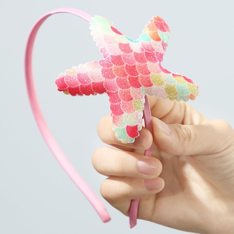 WRBAJIS Glitter Starfish Headband Sparkling Fish Scale Hair Bands Sea Star Hair Hoop Mermaid Hair Accessories for Women Girls Birthday Wedding Festival Celebration Party Supplies(Pink)