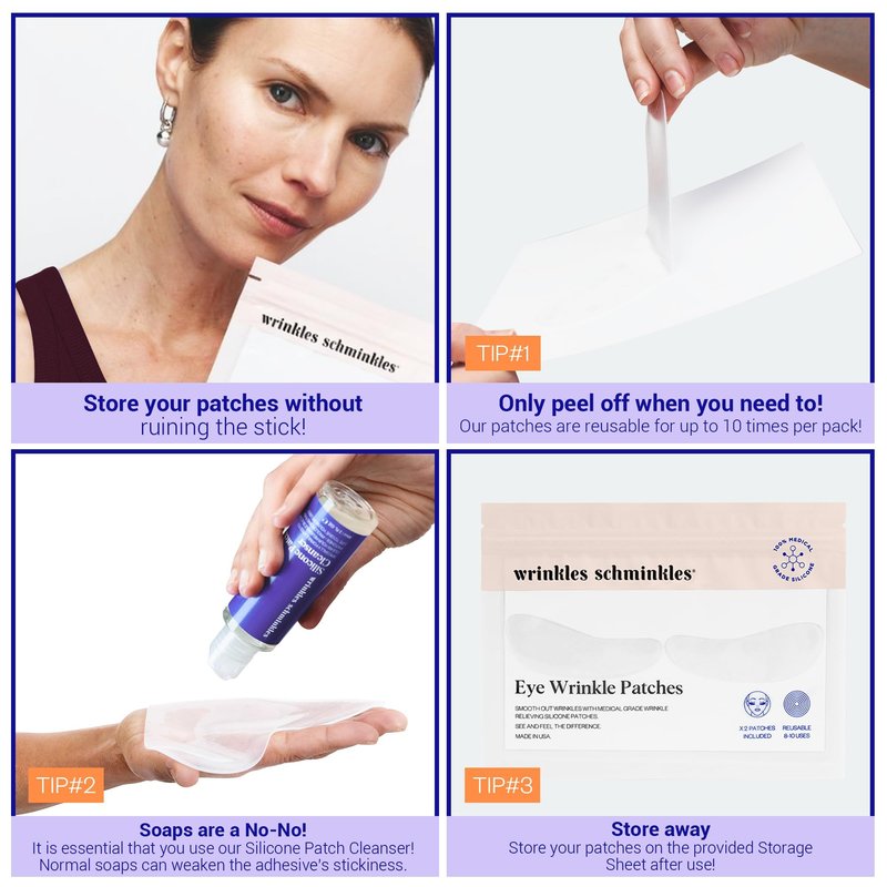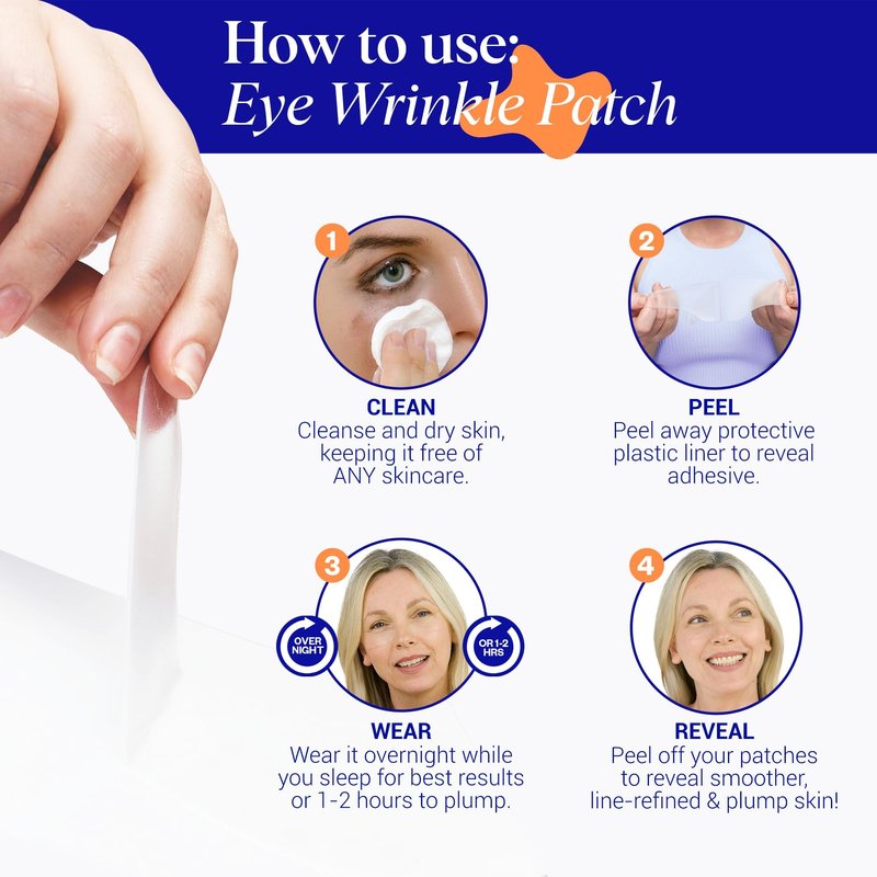- EASY TO USE: Cleanse & dry skin, keeping it free of ANY skincare. Peel away plastic layer of the Silicone Patch to reveal adhesive. Stick Silicone Patch on target area, adhesive side on skin. Wear while you sleep for best results or 1-2 hours for a boost. After use, gently peel off Patches, sticking them on the enclosed storage sheet.