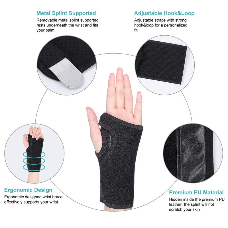 - 【Lightweight and Washable】 Made of breathable material, it provides all-day comfort to your hand; its material allows it to be hand washed after taking out the metal support; Please choose the right or left wrist as your need