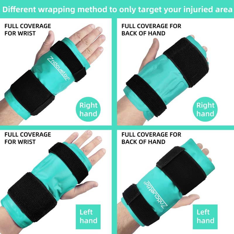 - Innovative Dual-fabric Design:Our wrist compression ice pack is newly designed with a soft plush side that is handy to apply without a towel wrapping. The soft plush is available to use straight to skin,avoid skin discomfort caused by low temperature and prevent condensation water dripping from cooling.
