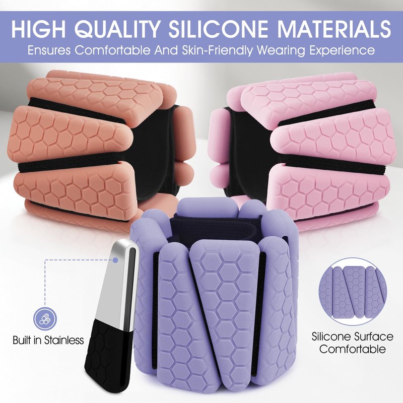 - 【HIGHT-QUALITY】: Our adjustable wrist weights sets made of soft and comfortable silicone material, providing a skin-friendly, sweat and waterproof wear. Unique triangle design can make it bend freely, and the stainless steel material inside can ensure enough exercise load under the premise of free bending. Each triangle load can move freely, allowing you to adjust the weight of bracelets, you can remove a section load to create a better fit, make you more comfortable to enjoy sport.