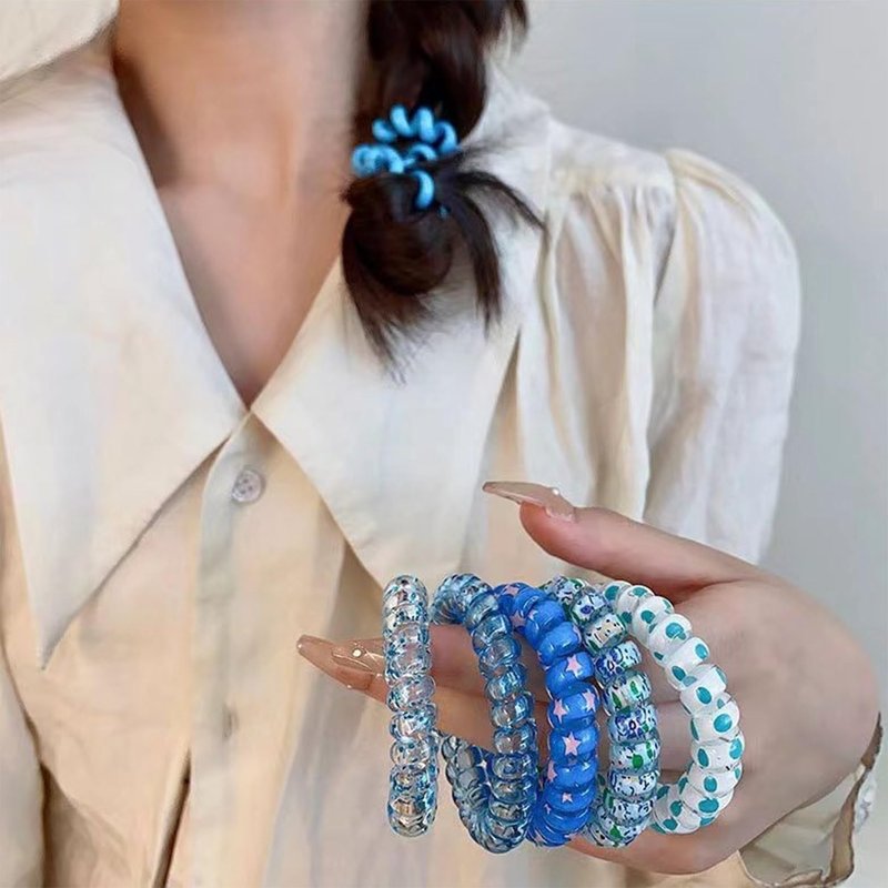 Wsiliana 6Pcs Hair Elastic Spiral Hair Candy Color Hair Circle for Women and Girls (003-Blue)