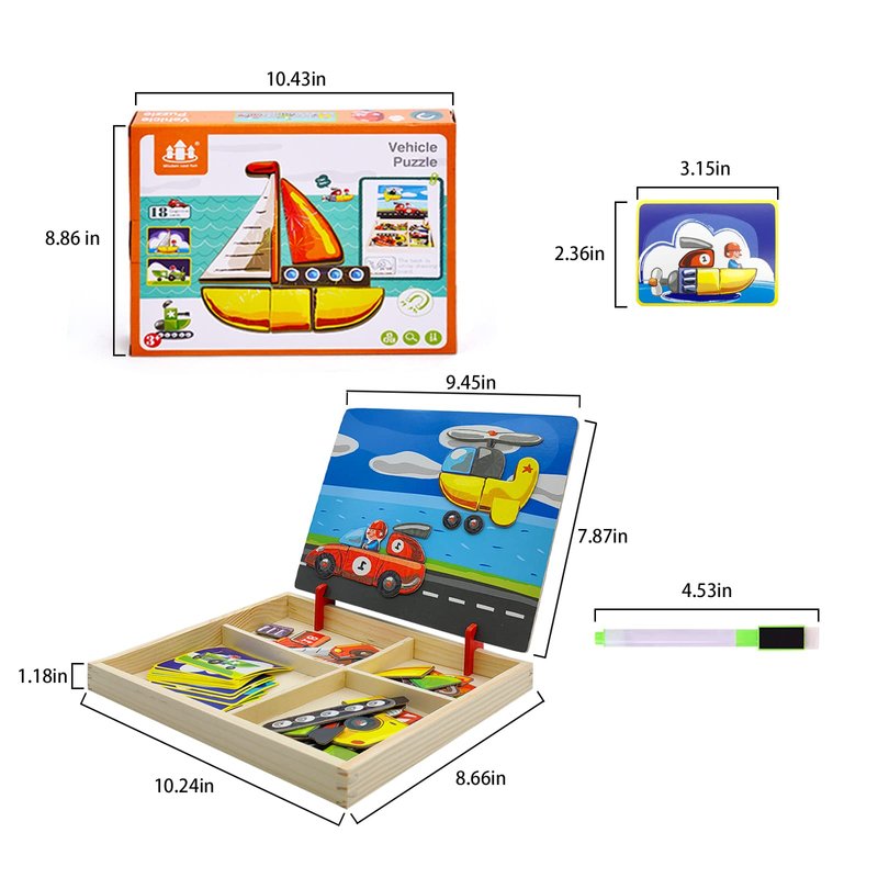 wskvoker 85-Pieces Magnetic Puzzle Drawing Board,Preschool Educational Learning Toys Set for 3 4 5 Year Old Boys Girls,Transportation Cognition Puzzles Travel Toy with Organize Box.