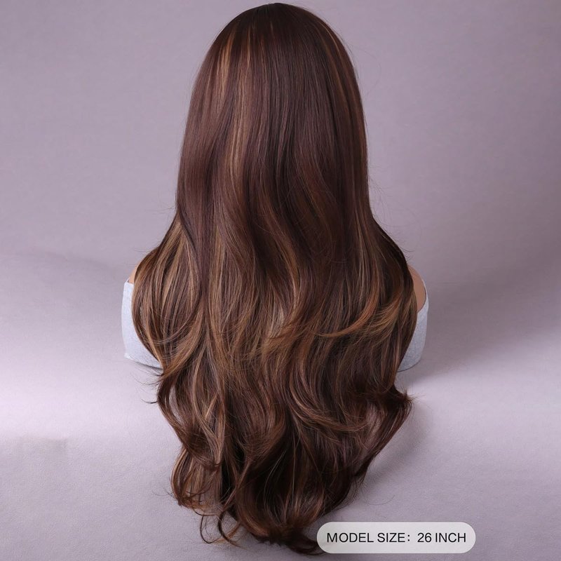 • Premium Synthetic Hair: Crafted from high-quality synthetic fibers, this brown WTHCOS long curly wavy Hair Wig offers a soft and smooth texture that closely mimics natural human hair.