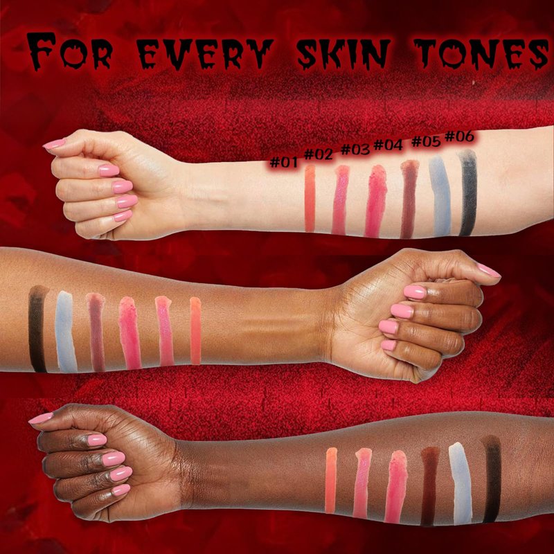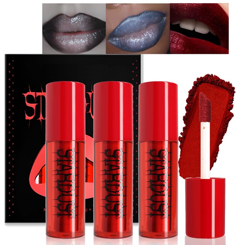 - Powder to Liquid Lipstick: Our matte powder to shimmer liquid lipstick set featuring standout hues like black, red & gray-blue, blending seamlessly with face paints for an unforgettable Halloween look, making your costume stand out at any festive gathering