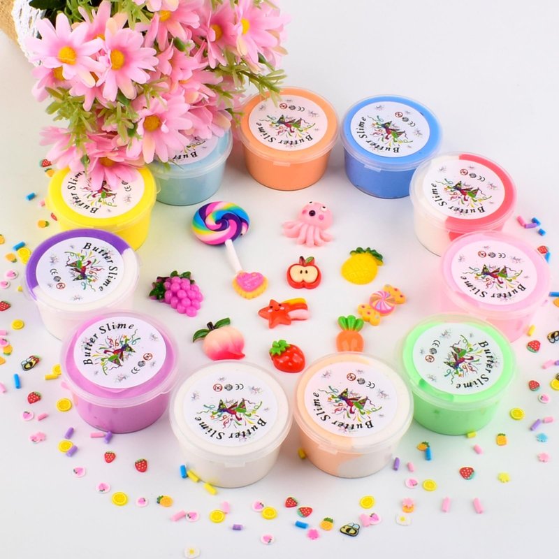 - Butter Slime: Contains 11 Slimes In Different Dual Colors, Pink Green Bule Slime, Volume of 11x45ml, With 11 Cute Slime Accessories, Peach Rainbow Lemon Coffee, Etc, Mucus Have Enough Supplies. Easy for Children to Play.