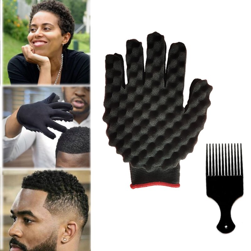 WULI PEACH Magic Barber Curling Twist Sponge Gloves Brush for Black Men's Natural Hair and Women's Curls (1pc)