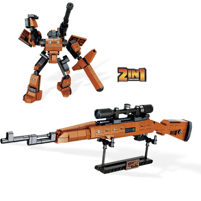 - 2 modes to play: 2 in 1 Building set can be built into two forms - 98K sniper rifle and mech model,You can only build one form at a time,then rebuild the other one. Both forms have instructions,following the guide step by step will make it easy to build
