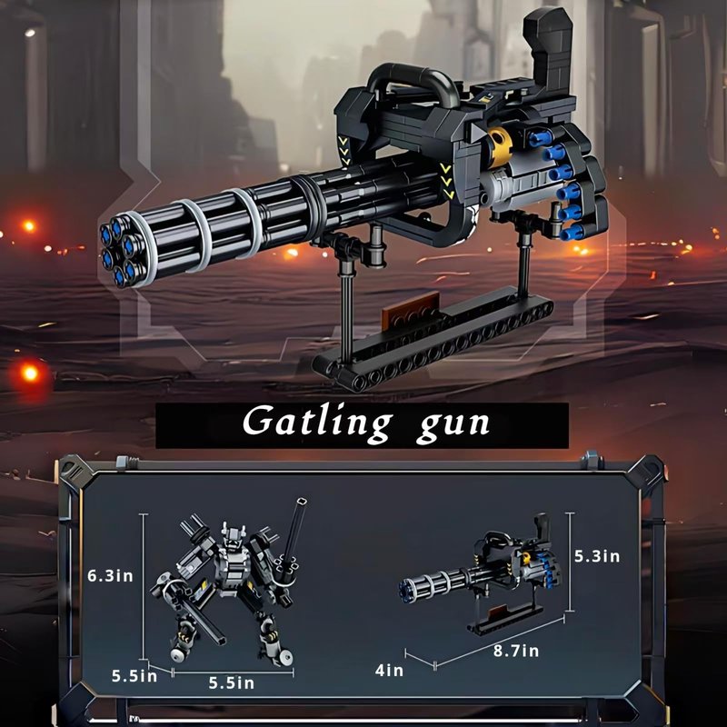 WULOBOOI Gatling Gun Building Blocks Set, 2 in 1 DIY Assembling Gun or Mech Model, 389 Pieces Bricks Collectible Military Weapon Toy Set Gift for Boys Adult or Firearm Fans