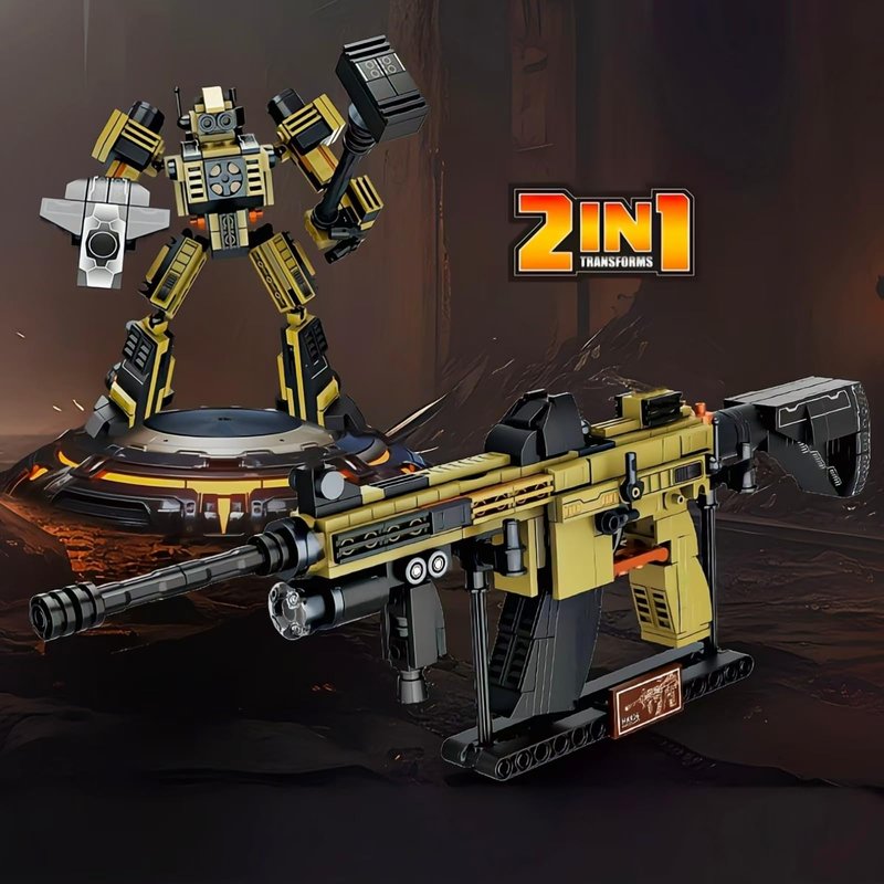 - 2 modes to play: 2 in 1 Building set can be built into two forms - M4 carbine and mech model,You can only build one form at a time,then rebuild the other one. Both forms have instructions,following the guide step by step will make it easy to build