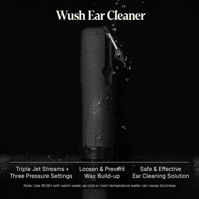 - Wush Pro with Tips Kit: Wush Ear Cleaner Pro by Black Wolf is a safe, effective, and gentle way to clean your ears. This kit includes a Wush water powered ear cleaner, USB charging cord, and 12 silicone replacement tips (6 black and 6 white). Wush helps gently loosen and prevent wax buildup.