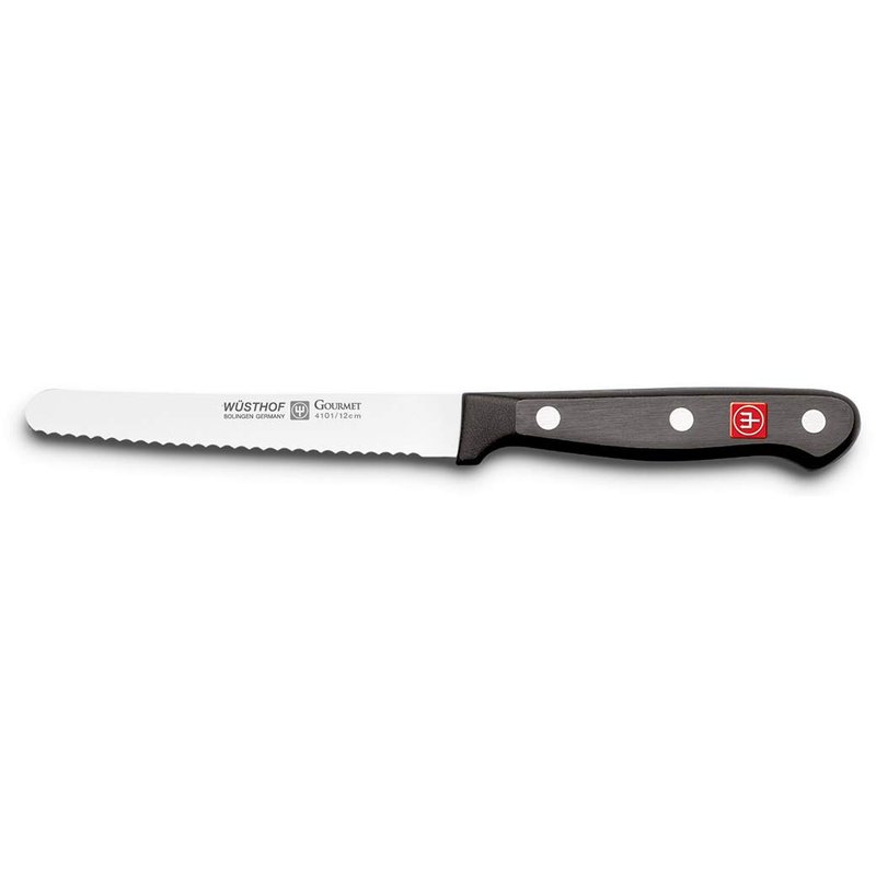 - WÜSTHOF UTILITY KNIFE – The GOURMET 4 1/2" Serrated Utility Knife is smaller than a cook’s knife but larger than a paring knife, making it the perfect knife for magnitude of tasks. A utility knife is much like a versatile paring knife and is perfect for mincing shallots, onions and herbs as well as cutting vegetables or cutting small meats