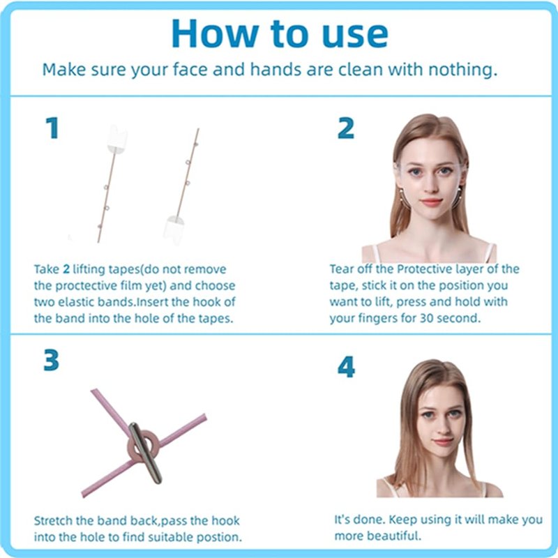 - 【Easy to Use】Cleanse your skin, apply the tape, secure it in place, and gently pull the skin back 3 to 4 inches using the magic band. Witness astonishing results without overstretching the tape. Embrace the future of face lifting with our versatile and easy-to-use face tapes for lifting sagging skin.