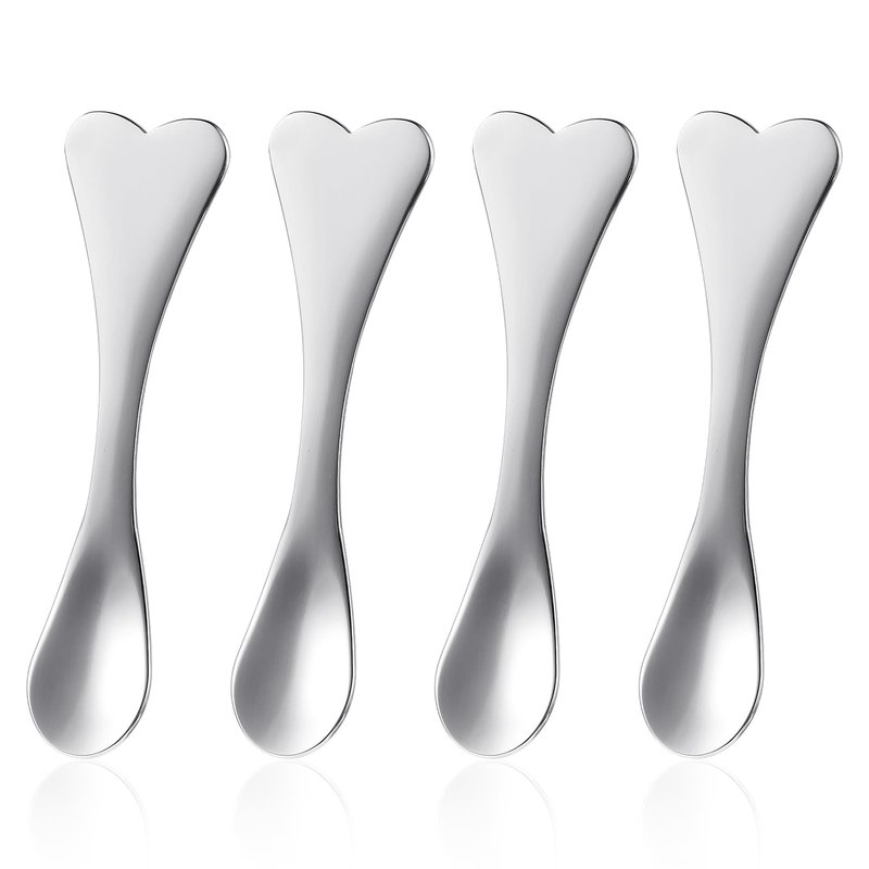 WY LIGHTING LEVEL Metal Makeup Spatula 4 Pieces Facial Massage Scoop Mini Beauty Spoons Heart-shaped Skincare Applicator Brush Reusable Cosmetic Tools for Face Mask Cream Lotions Moisturizers