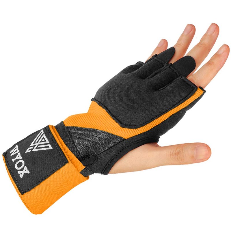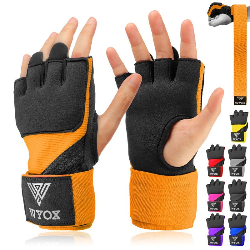 WYOX Gel Premium Hand Wraps for Boxing Gloves, Quick 80cm Wrist Wraps, Padded Knuckle Boxing Wraps for Men, Women, Muay Thai Hand Wraps, MMA Kickboxing Martial Arts Inner Glove (Orange, S-M)