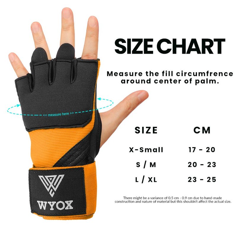 WYOX Quick-Wrap kickboxing gloves for women & Men Features: Super Thick (8mm) Neoprene Gel knuckle Shield to Ensure Maximum Protection & Comfort. Maximum Impact Area Coverage Cushion (Stitched for Durability) Lightweight Breathable Mesh offers Palm breath-ability, Comfort & serves as boxing gloves deodorizer. Amara Infused Lightweight Mesh Offers Enhanced Durability. Elasticized wrap material on the weighted gloves offers maximum comfort during strenuous training. Expect durability and air permeability through the Japanese Amara Palm that is fitted on the boxing hand wraps. The training gloves have a neoprene wrist enclosure that has hook and loop to ensure that the glove is tightly fastened around your wrist. Ideal boxing tape for hands, wrist wraps boxing mma gloves, Men Womens boxing gloves, boxing wraps women, wrist wraps boxing, men fighting gloves, mma sparring gloves, mma gloves women boxing gloves boxing wrist wraps boxing gear wrap, kids boxing wraps, heavy bag gloves women, ufc gloves men, kids muay thai gloves, heavy bag gloves, kick boxing equipment. Advance Protection || Super Shock-absorbing Neo Gel Padded Knuckle Shield Maximum Comfort || Easy-on Hand wraps / Easy-off loop / Velcro Closure Wrist wrap Enhanced Durability || Japanese Amara Infused Breathable Mesh Allows Air Permeability Improved Design || Max Impact Coverage, Stitched Contoured Gel Neoprene WYOX sports || 100% Customer Satisfaction / Dedicated Customer Service rival sparring gloves