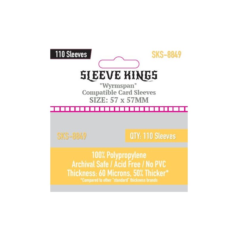 You will receive 3 packs of card sleeves to protect Wyrmspan. Game not included. We designed and crafted this card sleeve bundle with the finest attention to detail and precision for the game Wyrmspan. You can rest assured that your Wyrmspan cards will be protected from dirt, grime, spills and anything else that your gamer buddies can throw at them! Protect your investment with this custom card sleeving bundle before it's too late! Buy with confidence! ** Note Game Titles and their intellectual property rights are and TM of their respective rights holders, no challenge to these rights is expressed or implied. Compatibility claims only extend to the physical size of the cards in each respective game and no claim to endorsement or authorization by the respective rights holders is expressed or implied by Sleeve Kings. Our products are compatible with the respective games only and all rights are reserved by the respective rights holders.