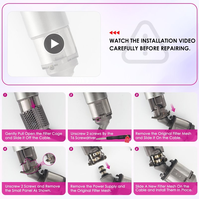 - [Packing List] The packing list includes: 1 piece hair styler inner filter and 1 piece T6 screwdriver.