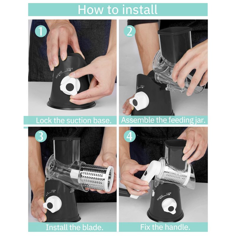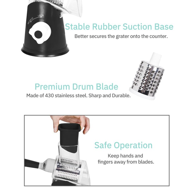 - 【Stability Guaranteed】Powerful suction feet keep the grater securely in place on your table or countertop, eliminating slipping or moving while in use.