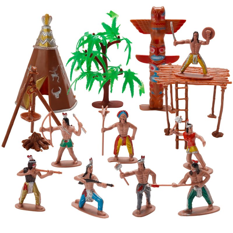 A set of Indians figurine(8 Indians, 1 Indian God, 1 Tree, 1 Shed, 1 Tent, 1 Campfire, a total of 13)