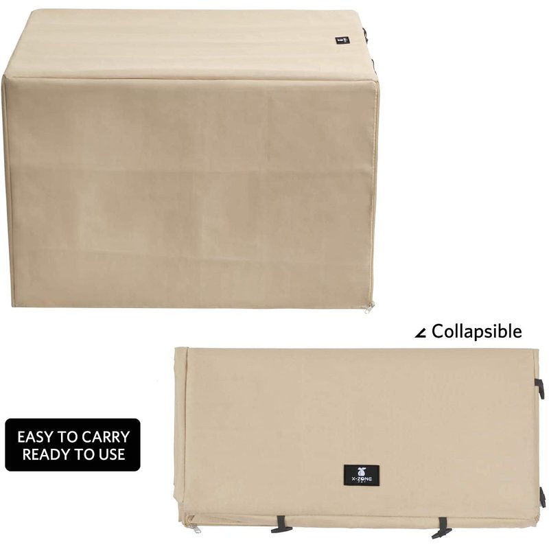 X-ZONE PET Double Door Dog Crate Cover - Polyester Pet Kennel Cover (Fits 24 30 36 42 48 inches Wire Crate) (30Inch, Tan)