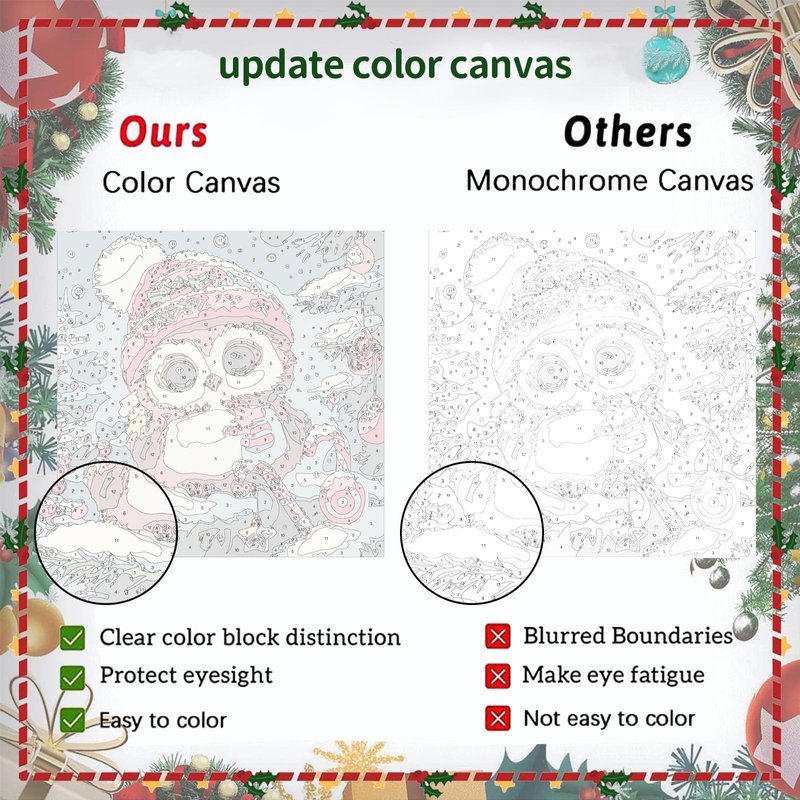 - 【Healthy & Vibrant Acrylic Paint】Unlike those cheap DIY painting kits,our Christmas paint-by-number kits for kids use healthy acrylic paint that provides long-lasting color and strong coverage.The paint is also easy to wash off with soap and water,making it safe for kids to use.The high-quality linen canvas and clear number printing reduce eye strain and provide a comfortable painting experience!