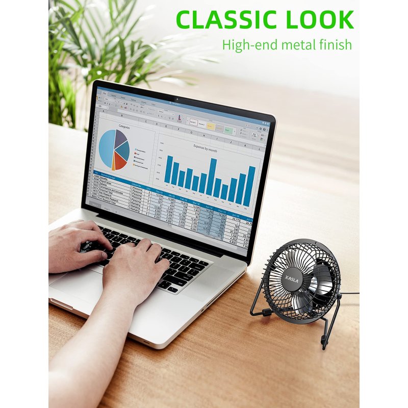 xasla 4 Inch Small USB Desk Fan, Mini Quiet Fan with Metal Construction & Strong Airflow & 360°Adjustable Tilt Angle, Personal Cooling Fan for Desktop Office (Black)…