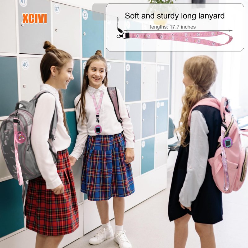 Xcivi Silicone Case Cover, Lanyard and Screen Protector Film for Tamagotchi Uni Virtual Interactive Pet Game Machine (Purple)