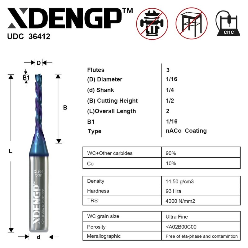 - Brand Assurance:XDENGP offers many ranges of industrial grade precision CNC tooling for industrial applications.XDENGP router bits for CNC machines provide superior smooth quality cuts everytime. 91% ultrafine tungsten carbide particles and 9% cobalt content design make the bit more wear-resistant.If you have any questions about the product, please contact us. Your problem will be resolved within 24 hours.