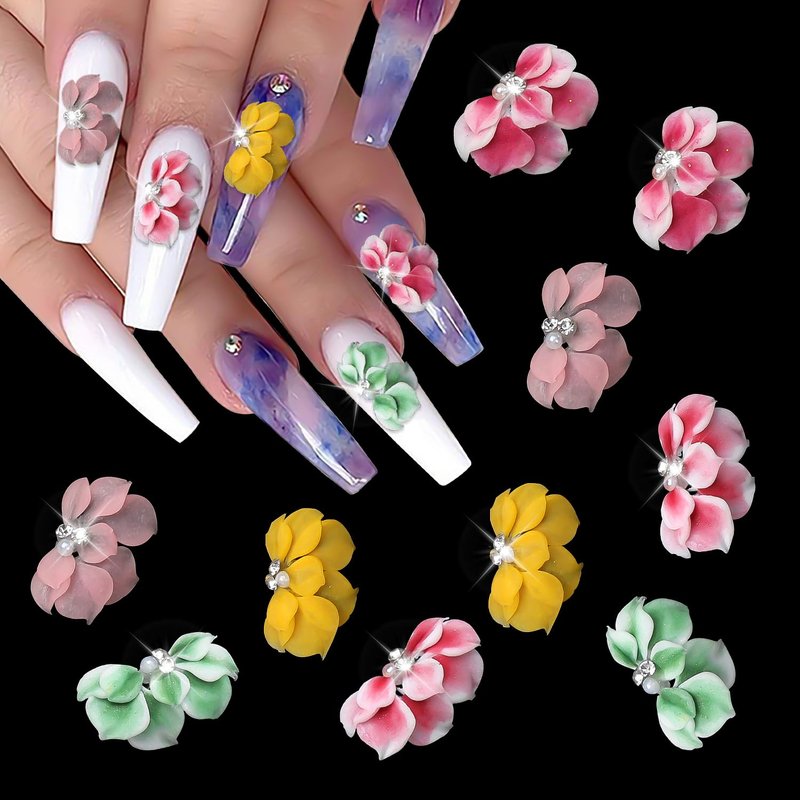 - Package Contents - You will receive 10 pieces flower nail charms, contains 5 colors, 2 pieces for each, easier to achieve different nail art designs, add sparkle and glamour to your crafts, make your nails more dazzling and charming.