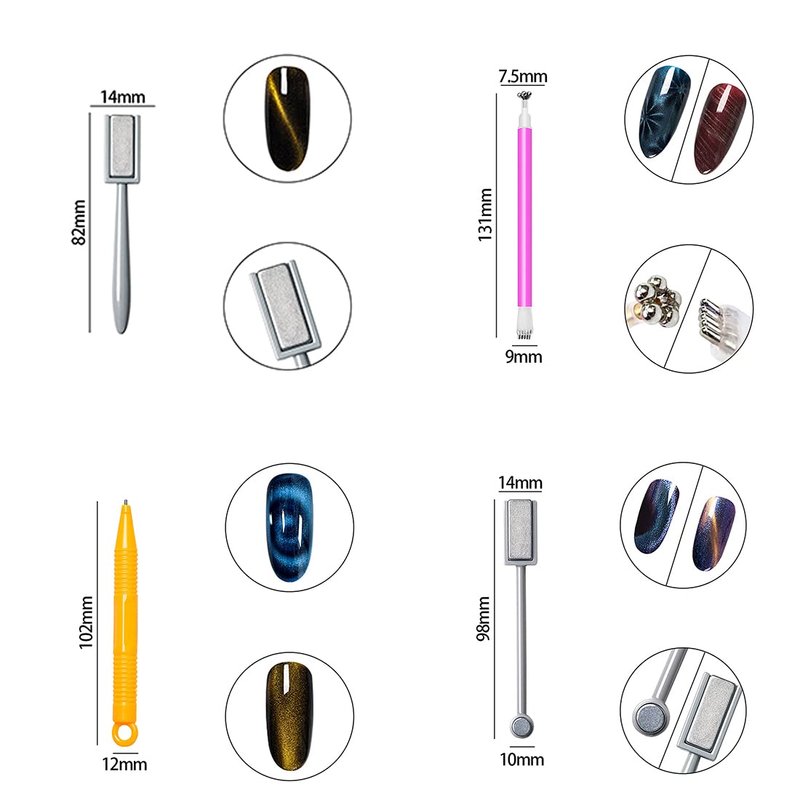 - 【HIGH QUALITY】:Using new magnetic materials and manufacturing technology, easy to use, safe and durable. Our DIY nail art kit can easily and quickly create long-lasting beautiful nails in a short time. The super magnetism helps you easily obtain the cat's eye effect within 5-10 seconds, but this tool must be used with CAT EYE GEL NAIL POLISH.