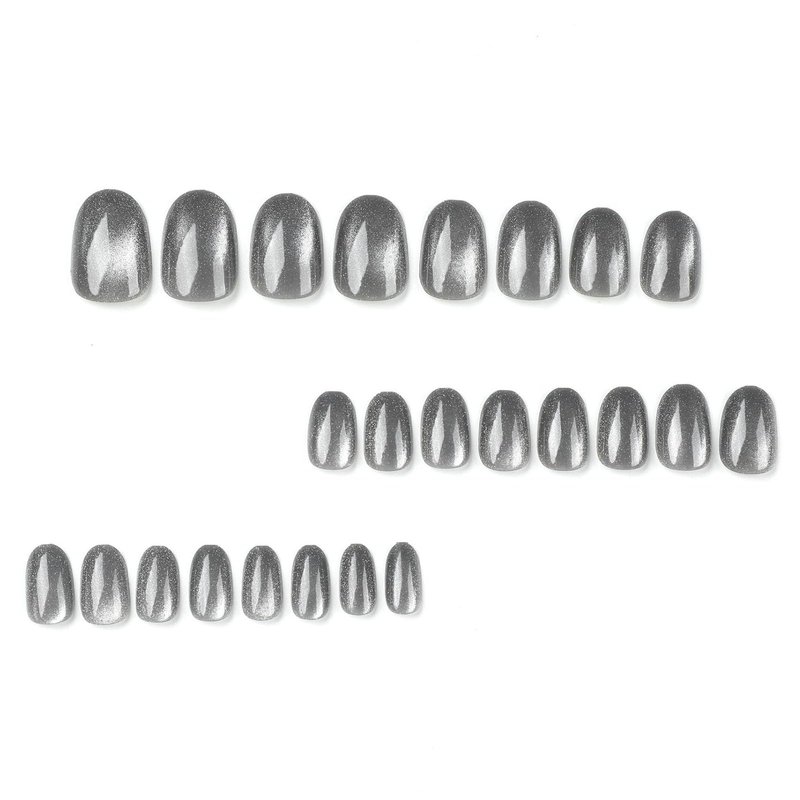 Xenophoer Cat Eye Press on Nails Short Oval Gray Fake Nails Acrylic Glue on Nails with Silver Glitter Designs Nails Press ons for Women Daily Wear 24 Pcs