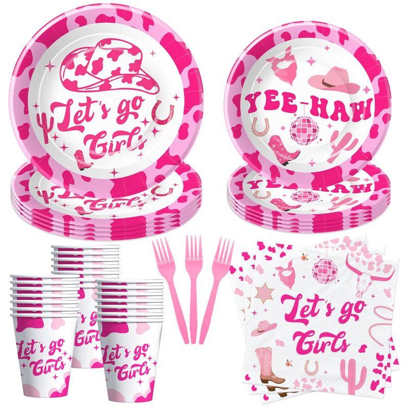 Western Cowgirl Theme Let's Go Girls Party Decorations Tableware For Birthday & Bachelorette & Baby Shower Includes:
