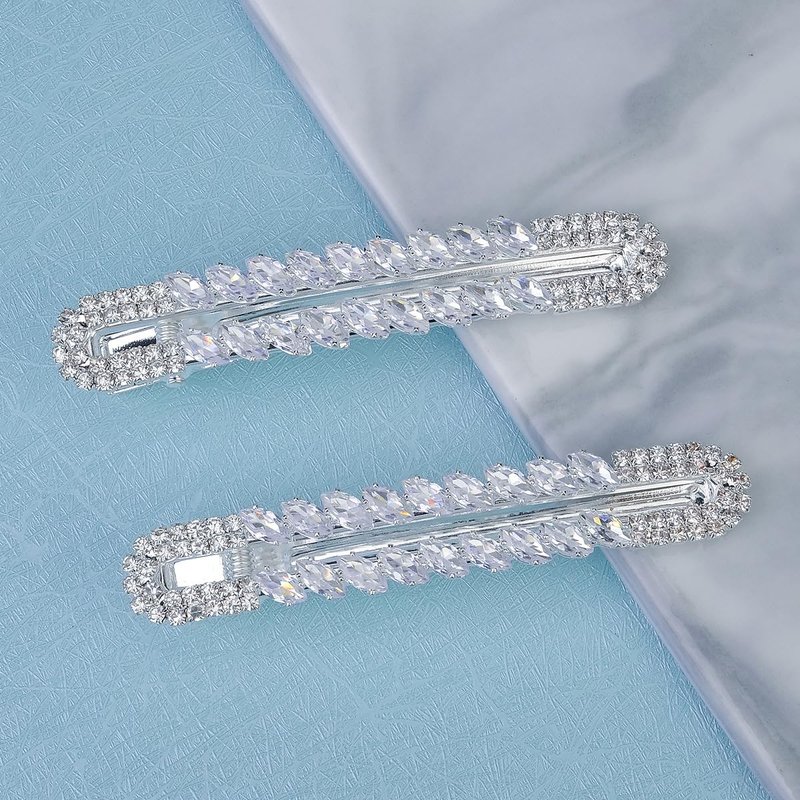 Xerling 2Pcs Sparkly Zircon Crystal Hair Barrettes Women Wedding Rhinestone Hair Styling Pins Silver Hair Clips Hairpins Decorative Hair Jewelry for Girls