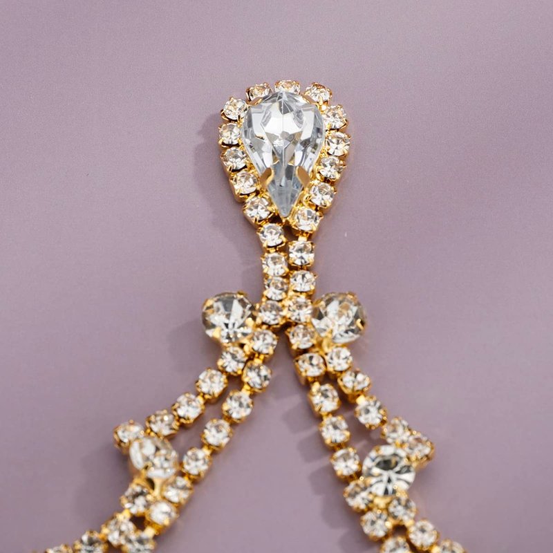 Xerling Boho Rhinestone Forehead Headpiece Head Chain Clip Crystal Pendant Hair Accessories for Festival Bridal Wedding Head Jewelry (Gold)