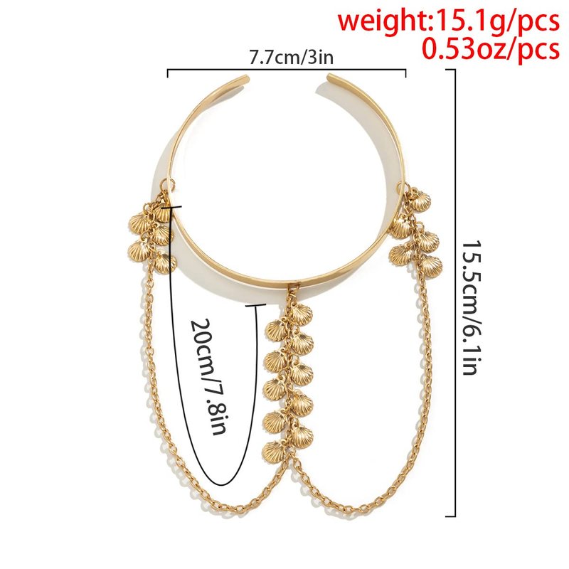 Xerling Gold Tiny Seachell Tassel Arm Bracelets Open Cuff Armband Armlet Chain Tassel Upper Arm Band Festival Costume Jewelry for Women