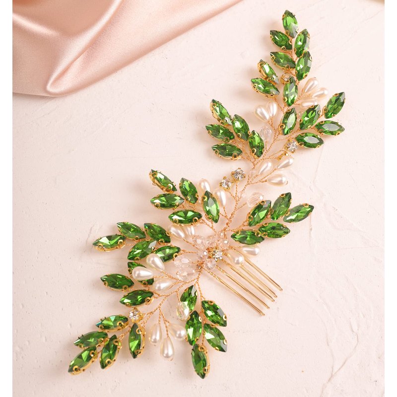 • ✿This green emerald hair comb is handmade for brides, bridesmaid and flower girls in superior quality.