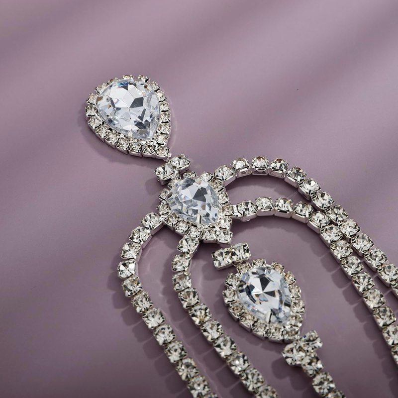 Xerling Silver Rhinestone Teardrop Crystal Layered Head Chain Headpieces Head Jewelry Forehead Pendant Hair Accessories with Bobby Pins for Women Girls (Silver)