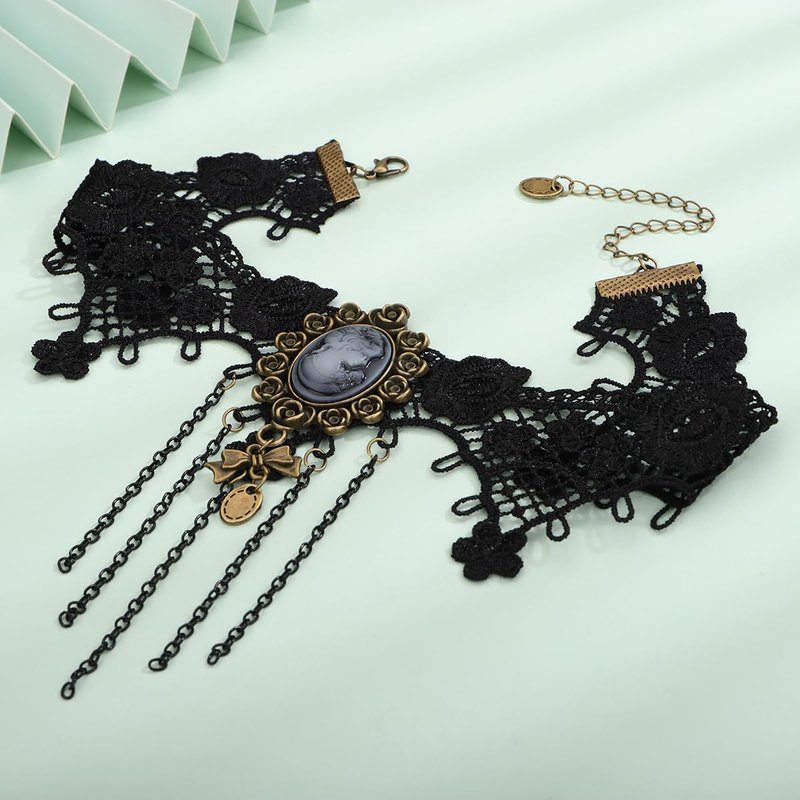 Xerling Tassel Black Lace Choker Portrait Floral Necklace Costume Jewelry for Women Halloween Festival Chains
