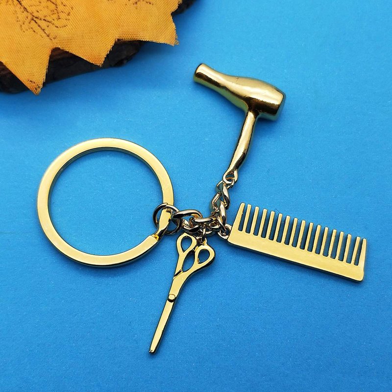 - This keychain comes with charming design -- scissors, blow dryer, comb charm. poignant gift for that special person and for yourself too.