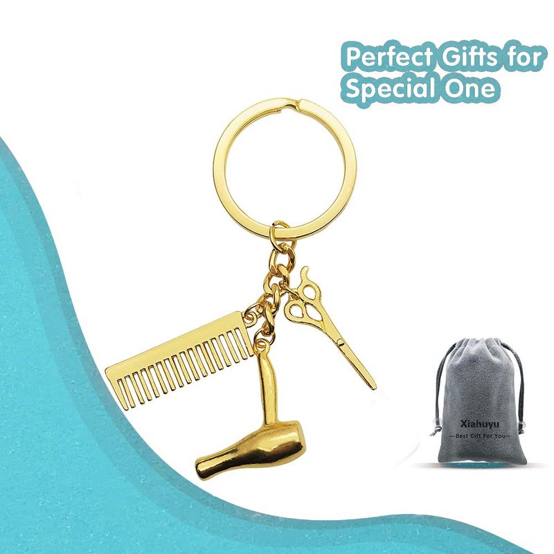 Creative Hairdresser Hair Dryer Scissors Comb Charm Pendant Keychain Keyring Gift for Hairdresser Perfect Salon Owner,or Hair Stylist Gift The Hair Dryer/Scissor/Comb charm are made from Environmentally friendly material Alloy, Lead-Free & Nickle-Free, no harm to health. This Hairdresser gift keychain can be a wonderful gift for your best friends,lover,family on Birthday,Wedding,Anniversary,Valentine's Day,Thanksgiving Day, Christmas Day!Specification Material: Alloy Color: GoldenPackage Included 1 x Keychain 1 x Gift BagOur Friendly Customer Service If you have any problems with our items or services, please feel free to contact us first. We will do our best to solve any problem,and provide you with the best customer services.