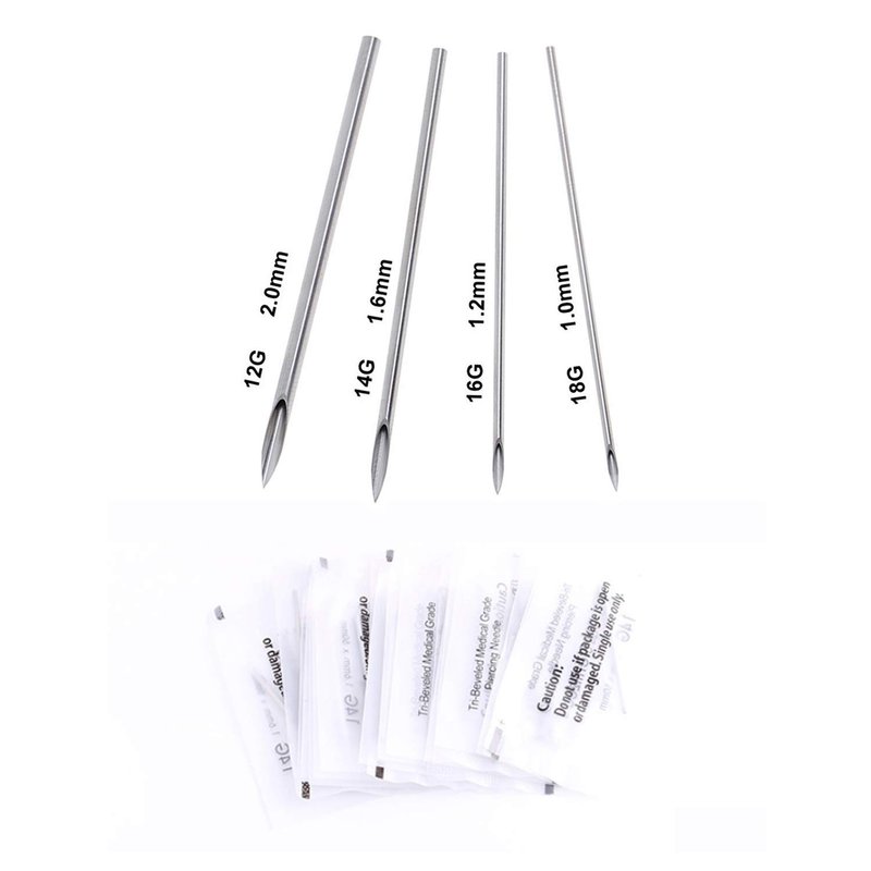 - PACKAGE INCLUDE -- 100pcs Piercing Needles for your choose , 14Gauge 16Gauge 18Gauge 20Gauge ( Each sizes 25pcs ).