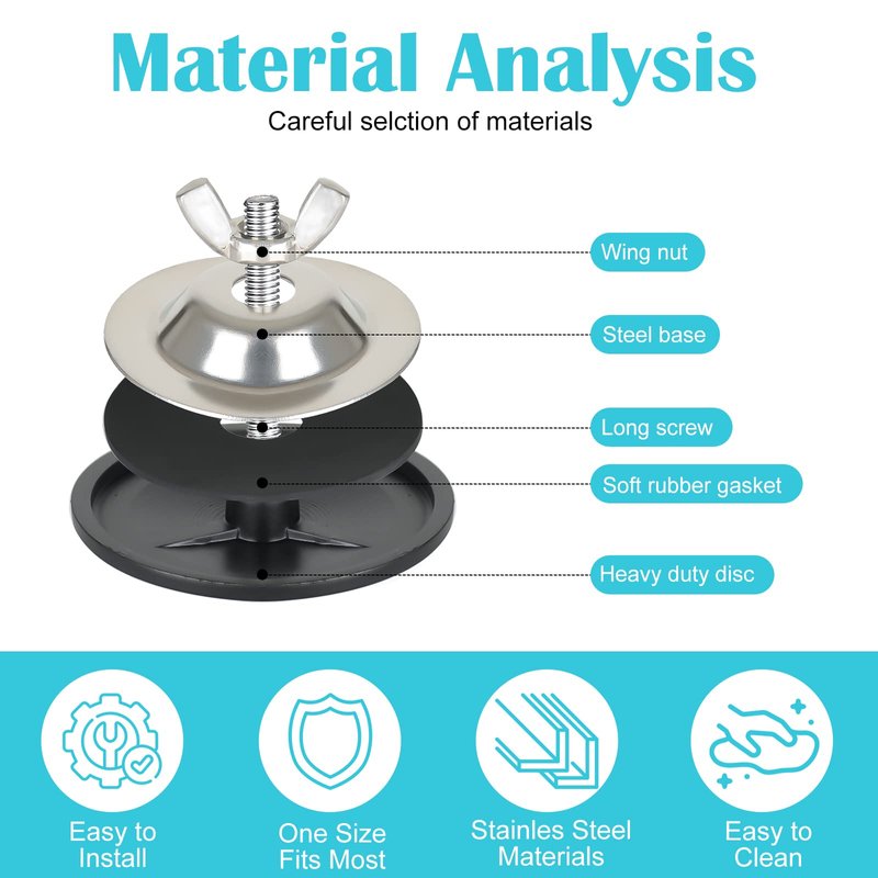 - Stainless Steel Material: different from the plastic material of screw rods on the market, the screws of this sink hole cover are made of quality stainless steel, with a 2 inch diameter of heavy duty brass plate, preventing your kitchen sink or toilet washbasin from accumulating water and causing rust to prolong service life